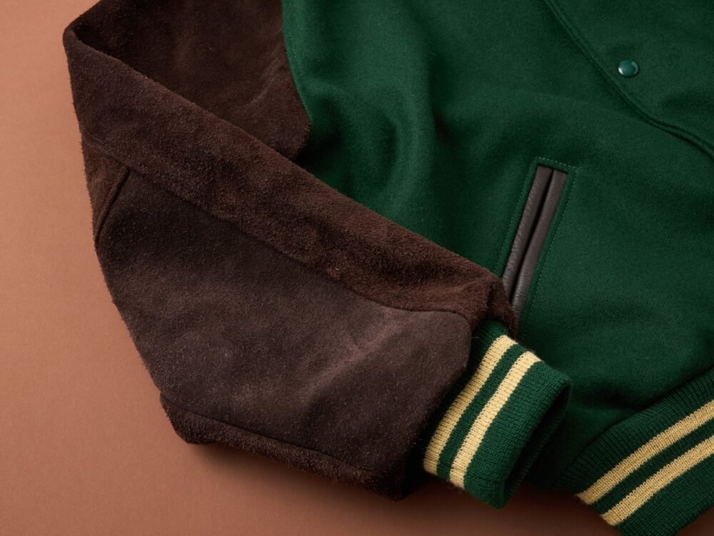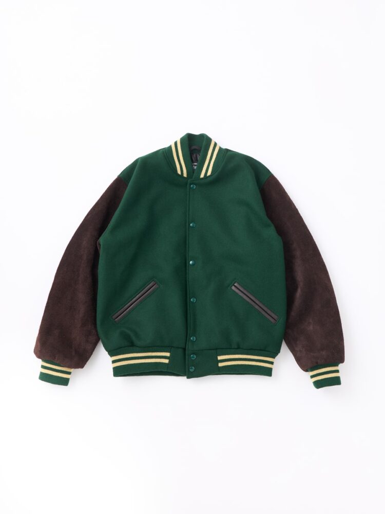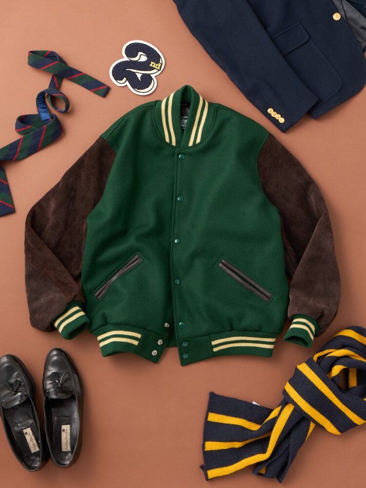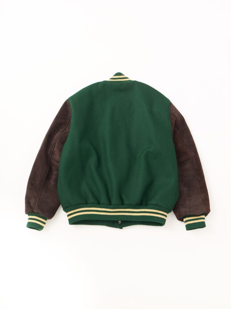 1990年の創業以来、ポートランドの工場で今もなお地元の学生やスポーツチームに向け受注生産を行っているというアワードジャケットメーカー「セトルマイヤーズ」が、2ndのために制作した特別な1着が完成。グリーンのメルトンボディとブラウンのスウェードスリーブの組み合わせが、クラシックかつヘビーデューティな佇まいだ。