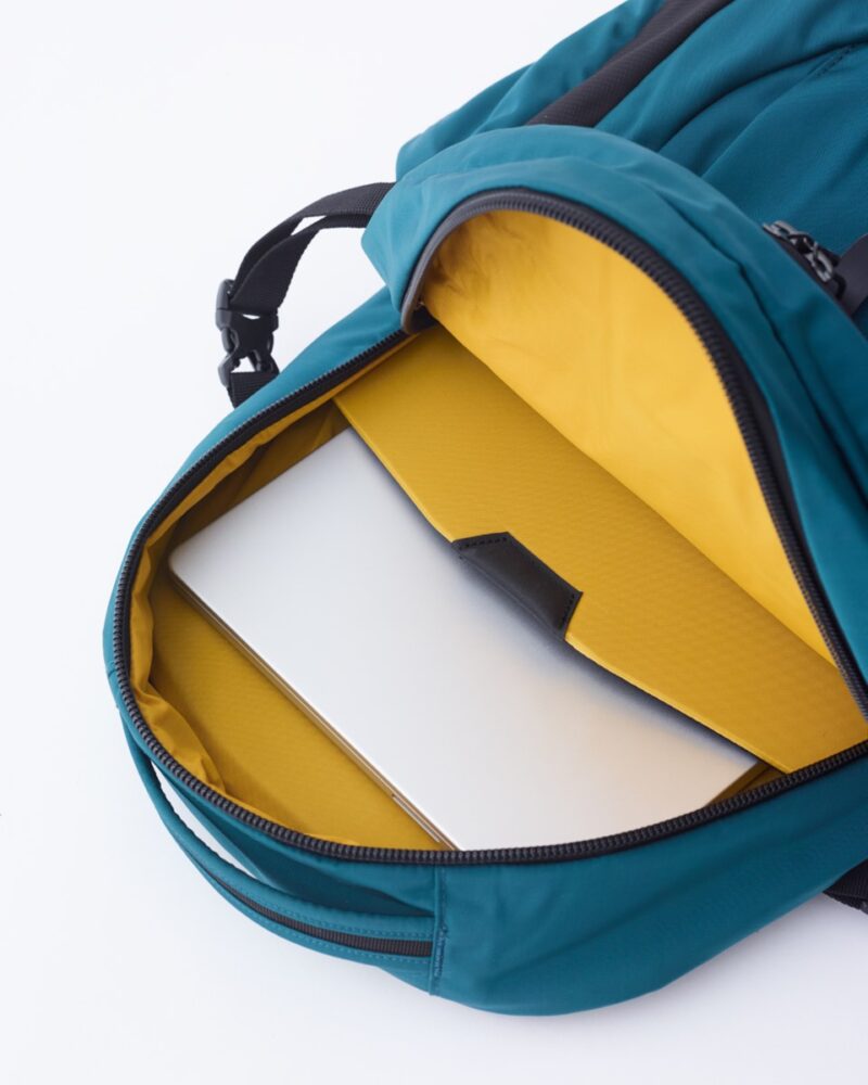 全体の構造とフォルムも見直し、ボトムに丸みを持たせることで、背負った際のシルエットがよりスマートでクリーンな印象に進化。メインコンパートメントには15インチ対応のPCスリーブを搭載し、大型画面のデジタルタブレットも安心して持ち運べるよう、従来モデルより固めのメッシュスリーブへとアップデートしている。