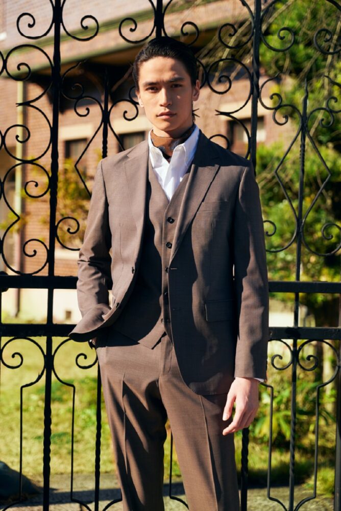 デビューと同時に公開される2026 SPRING特集ページでは、軽快さと洗練を兼ね備えた、目を惹くストライプデザインのセットアップをはじめ、菊池武夫の幼少期の特別な思い出に由来するビリケンプリントを、裏地やチーフ風ポケットにあしらったセットアップ、さらにはアーカイブモチーフの「T」アップリケが胸元に施された、懐かしさを感じさせるデニムシャツなど、遊び心に溢れるスタイリングを提案している。