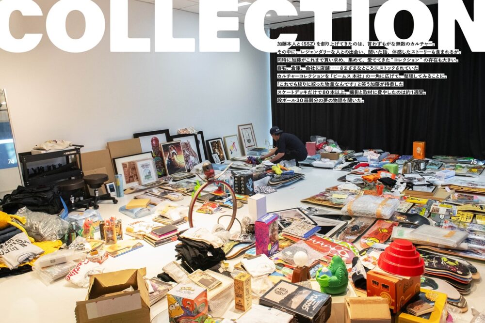 ヴィンテージかどうか、希少性や市場価値ではない。「自分が本当にいいと思ったもの」を選び続けてきた加藤。その膨大なアーカイブは、単なるコレクションではなく、クリエイティブのための資料であり、自身の感覚と判断軸を裏付けるストックでもある。
