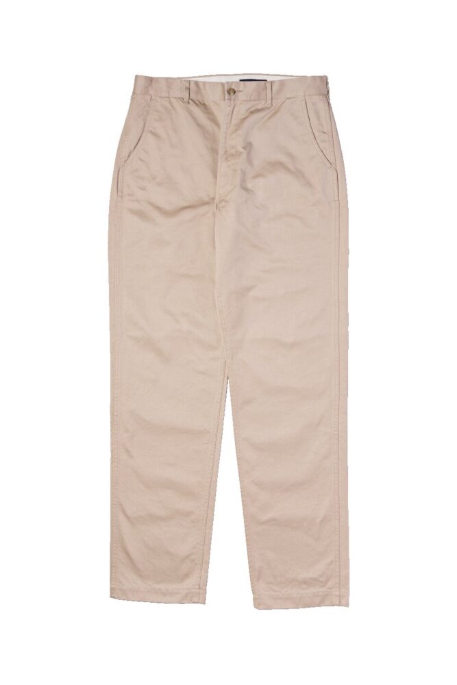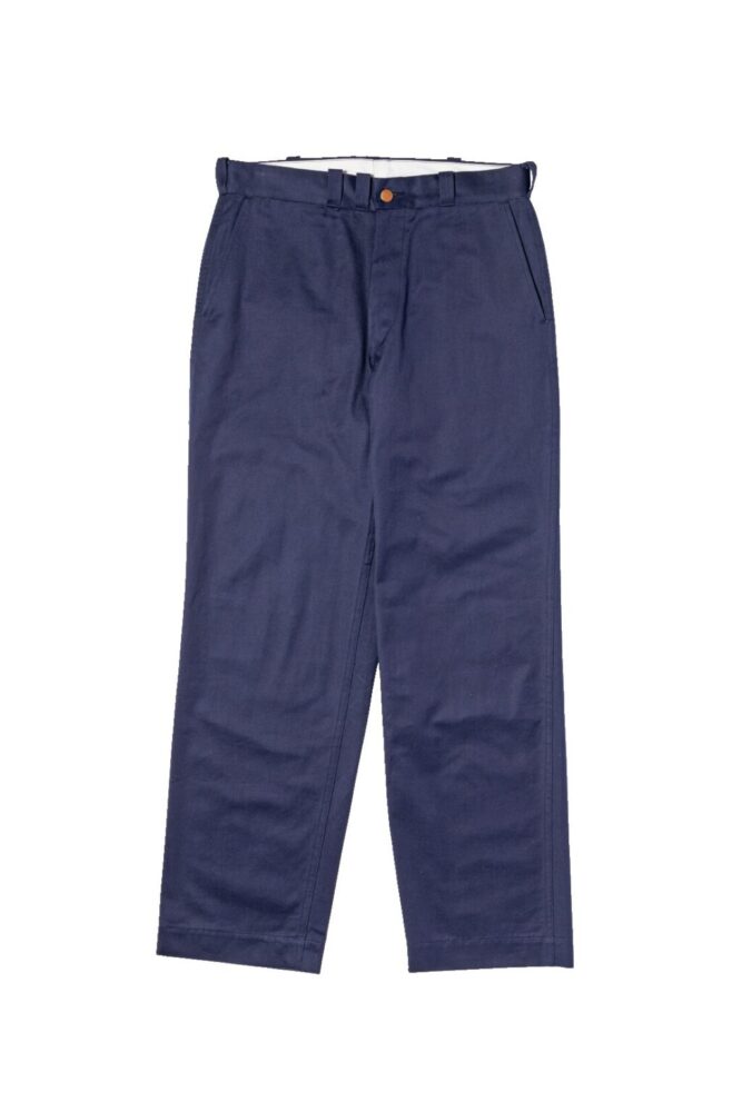 試行錯誤のすえ完成した自信作。40〜50年代の米陸軍カーキをもとに、股上は深くワタリからストンと落ちる流麗シルエット。2万9700円(メイデン・カンパニーTEL03-5410-9777)