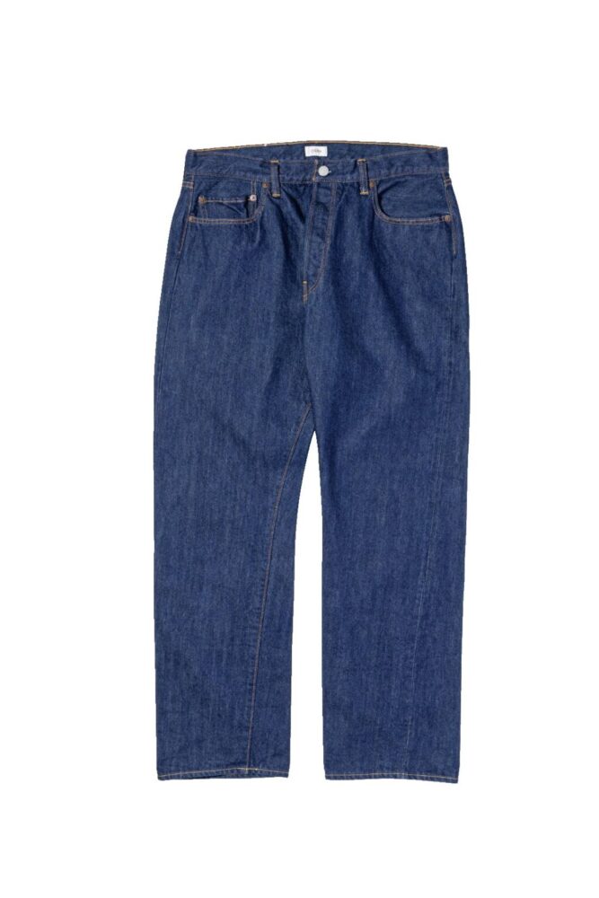 裾にかけて緩やかにテーパードするシルエットが魅力。ワンウォッシュ仕様で、穿きこむほどに色落ちや風合いの変化を楽しめる。2万4200円(ベースデニムプロダクツTEL0798ー74-8106)