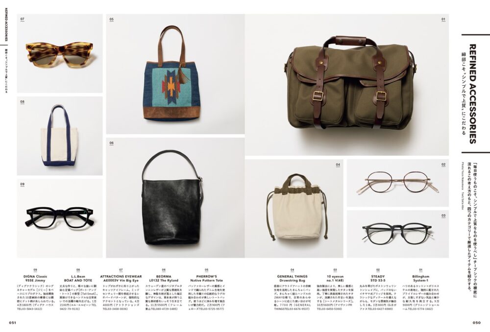 「毎日使うものこそシンプルで上質なものを使うべし」というチープシックの根底に流れるこの考えのもと、カバン、メガネ、ベルト、時計の4カテゴリにフォーカスして2nd編集部がおすすめするアイテムを紹介します。読者のみなさまのベスト・チョイスを導く、買い物の手引きとなるカタログページです。