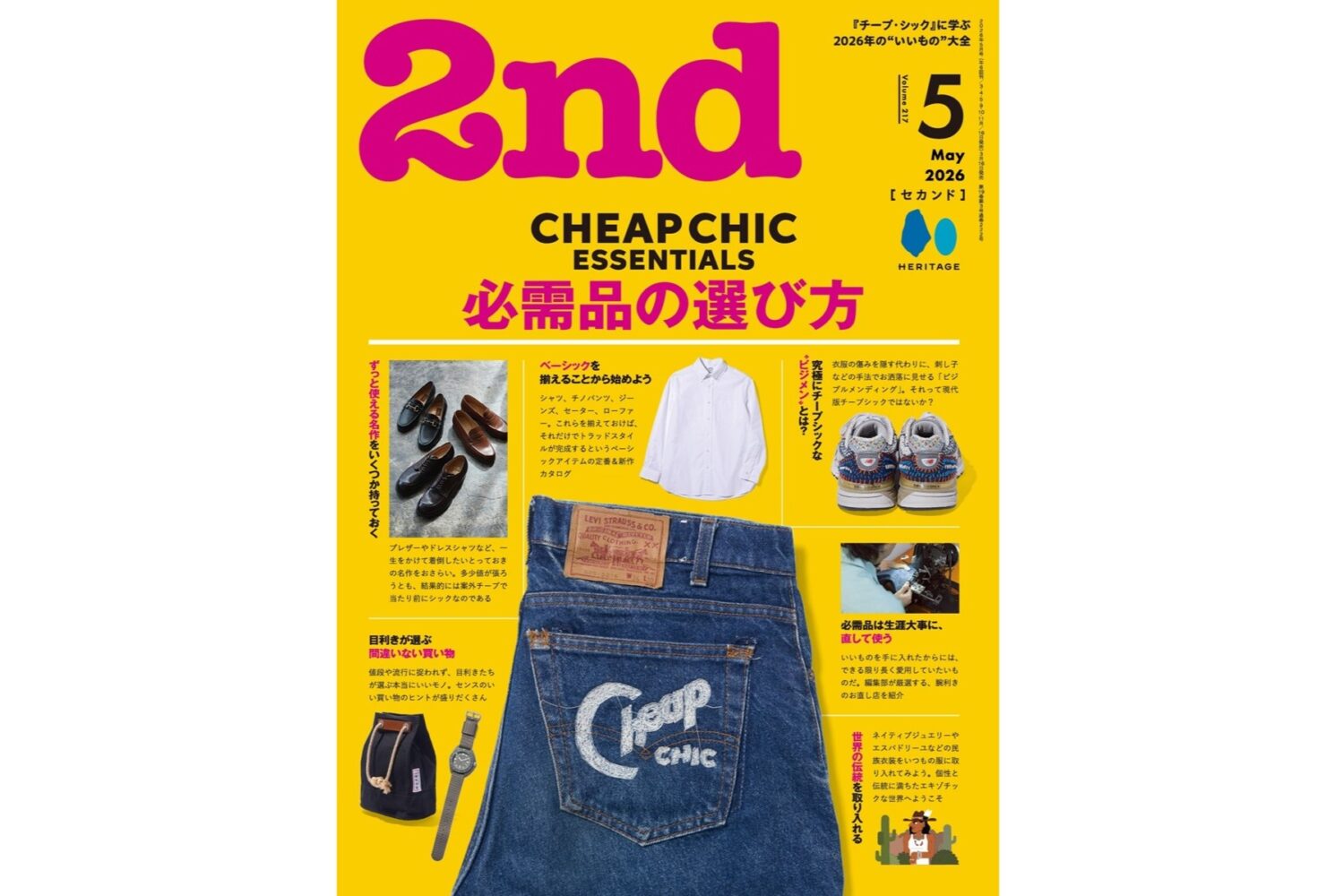 「お金をかけずにファッションを楽しむ」という意味で捉えられがちな“チープシック”という言葉には、「ベーシックなものを大切にする」という考え方があり、その先には「いくつかのとっておきを持ち、それらを長く愛用する」という意味が内包されています。チープシックの真髄ともいうべきこの哲学のもと、決して安価ではないけれど、持っておけば一生モノとして活躍するプロダクト(シャツ、パンツ、革靴から時計まで)を2nd的視点で厳選しました。