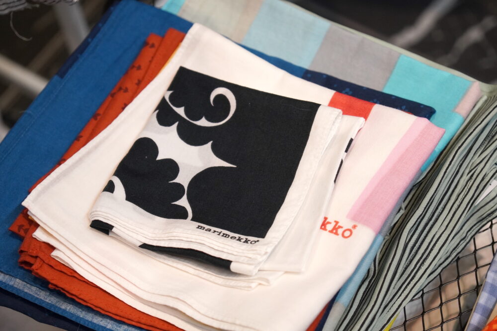 アメリカ古着が多い中、「マリメッコ」や「カルフ」といった北欧の古着が並ぶ「サタデー」。