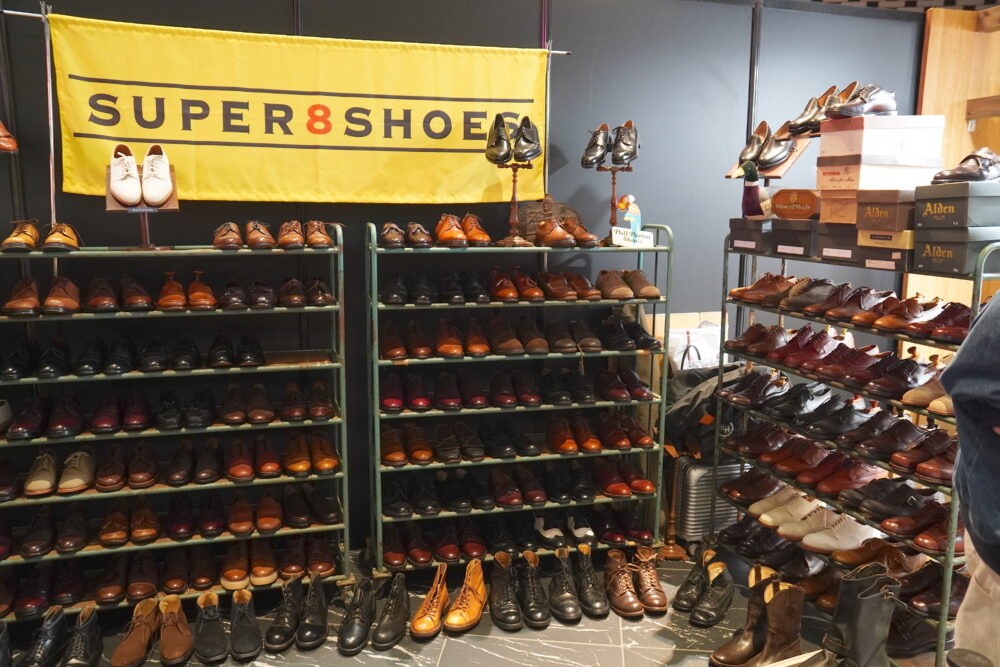 『2nd』でもお世話になっている、ヴィンテージ革靴の名店 「スーパー8シューズ」 も出店しています。ブースを取り囲むように並ぶ大量のヴィンテージ革靴は圧巻で、思わず見入ってしまう存在感でした。