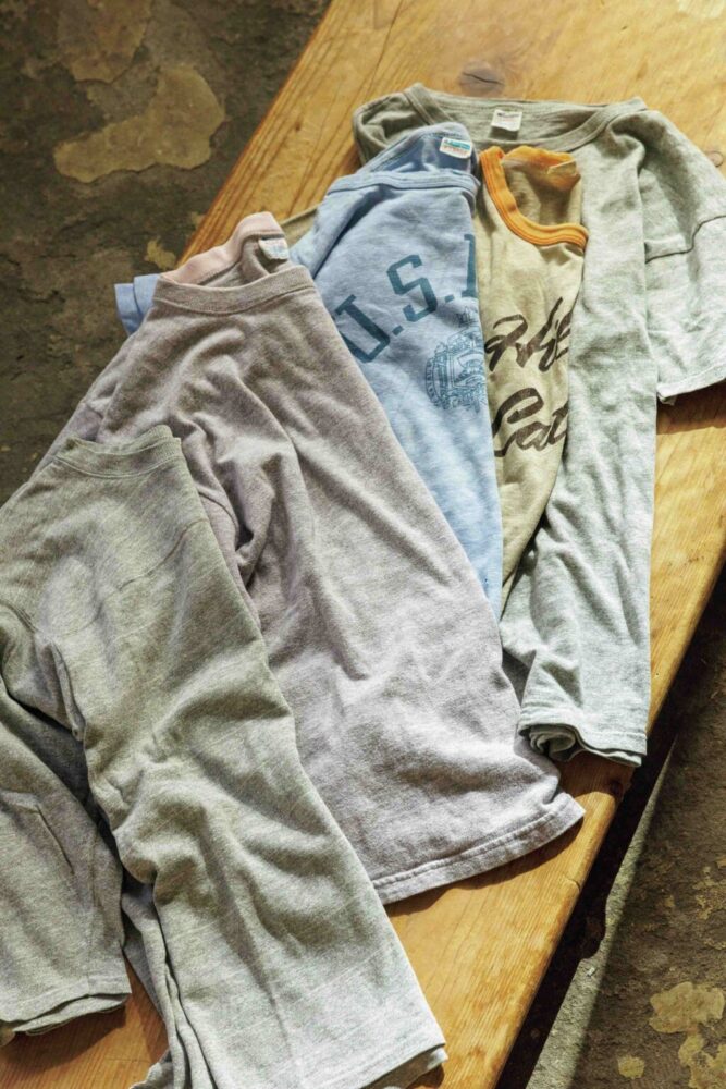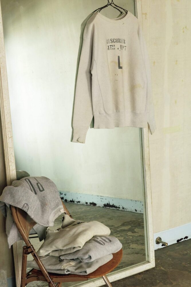 古着の「チャンピオン」の[リバースウィーブ]をきっかけにアメリカのアスレチックウエアに傾倒していったという薄さんの周りは、インスピレーションの源となるプロダクトで溢れている。
