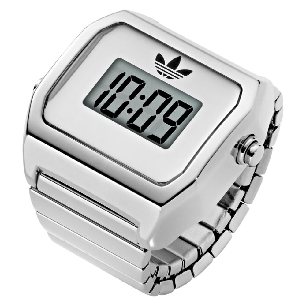 また、デジタルによる時刻表示をシンプルかつ大きくレイアウトし、視認性を最大限確保。アディダス オリジナルスのトレフォイルロゴを載せた以外に一切装飾していないことでも、時刻を判読しやすくしている。