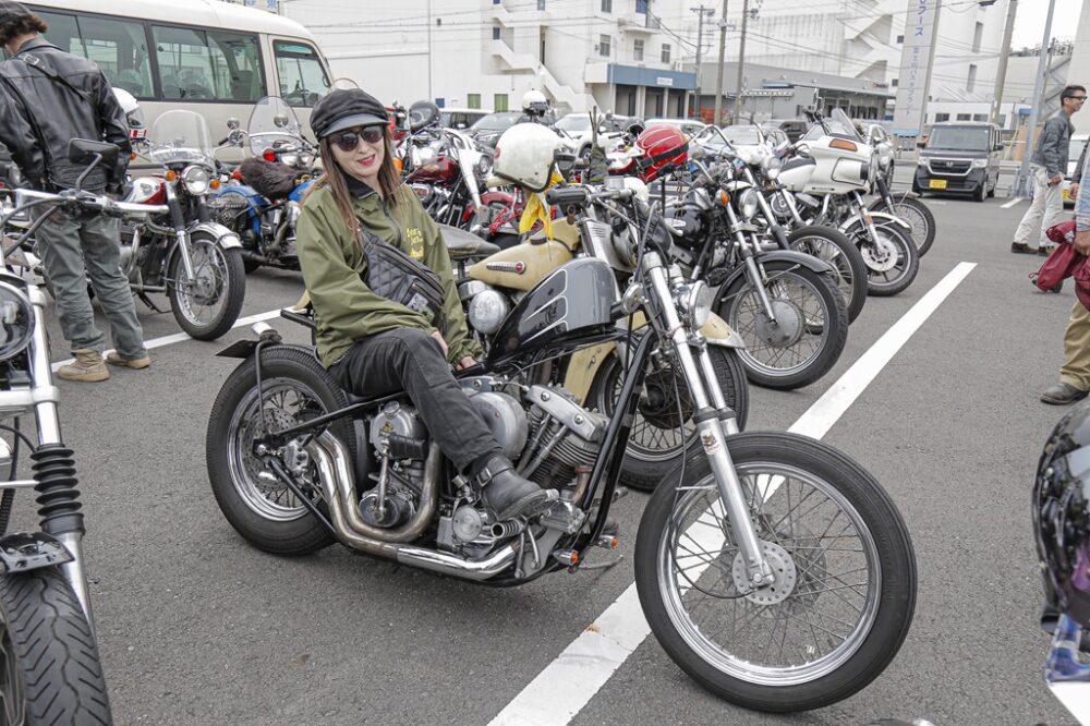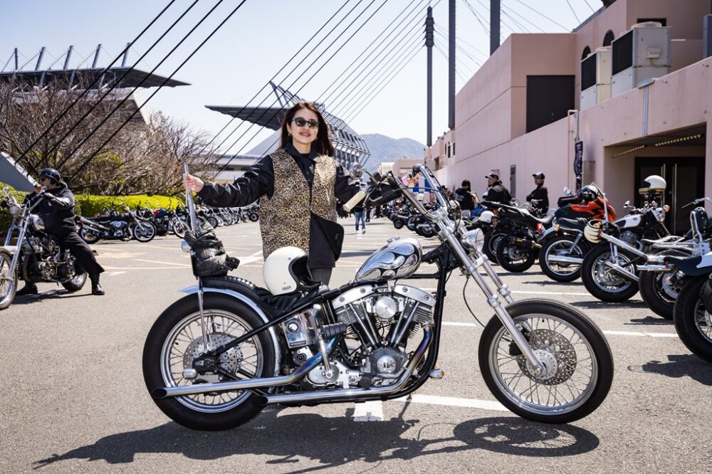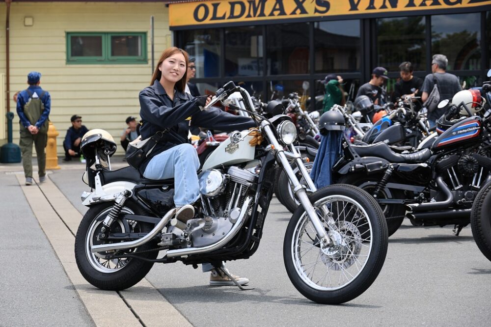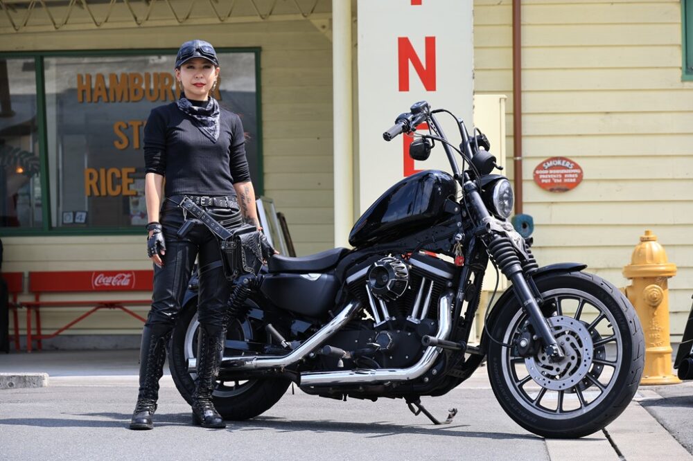 「パパがハーレーに乗っていたのがキッカケで、2輪免許を取得しました」という髙橋さん。18歳で免許を取得し、現在バイク歴4年目になる。「ハーレーでもスポスタなら、女性でも乗りやすくてカッコいい!」と絶賛。ロングフォークのチョッパーも難なく乗りこなす。いまも仲良し親娘で「休日はパパとツーリングに行ってます!」