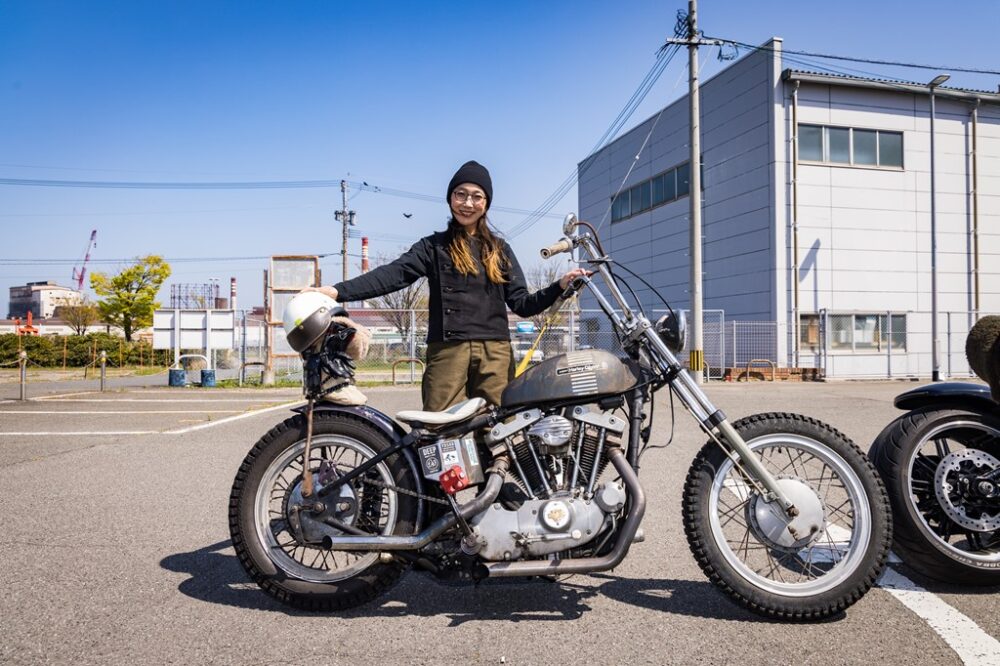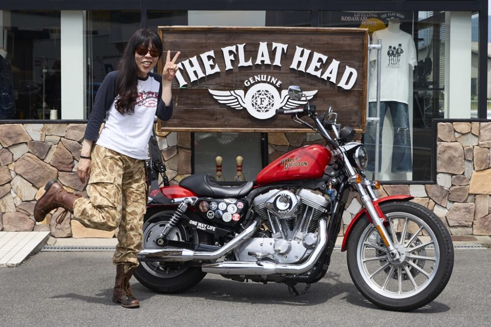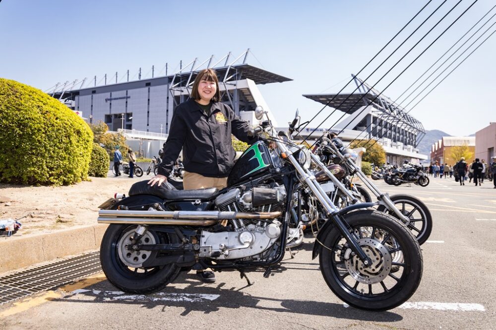 よくバイクの後ろに乗っていたというつかもとさん。「タンデムシートのままじゃなく、自分でも運転したくなったんです」と笑顔で語る。スポーツスターにしたのは「完全に見た目(笑)」だそうだが、「女性でも乗りやすいんですよ」と太鼓判!