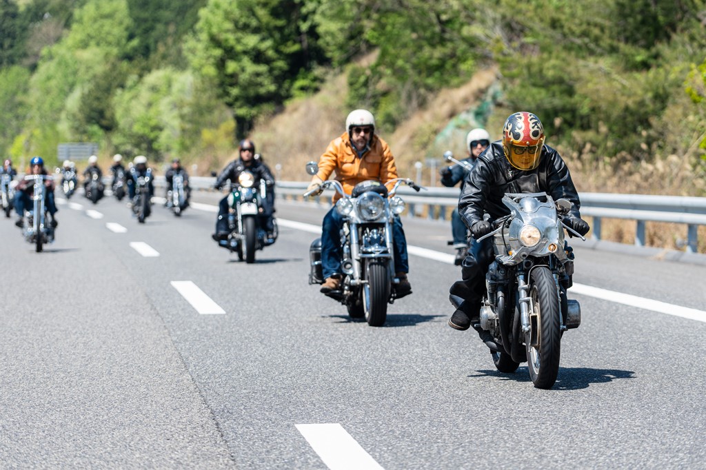 シルバージュエリー界の重鎮、「リンチシルバースミス」の矢野達也さんは奥様とFタンデムで参加。達也さんの足元はリンチシルバースミス×ウエスコの3rdコラボモデル。奥様は細めなパンツをブーツインした女性らしいボスの履きこなし。