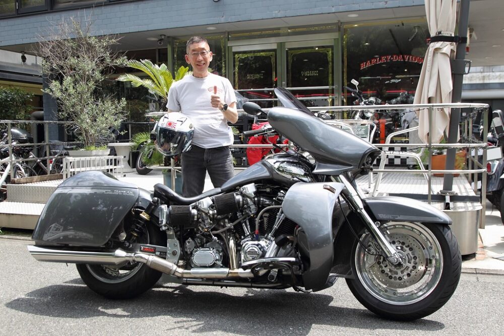 十代のころからバイクに乗りはじめ、好きが高じて某メーカーに入社し、紆余曲折を経て現在は都内某所で750年続くお寺の26代目住職を務める和さんはサンダンスの旗艦であるトランザムが愛車。実はこのマシン、ハーレーがベースではなく大和さんが最初に購入した大型バイクである「タイタン」をカスタムしたものだそうだが、カウルやフェンダー、サイドバッグなどの外装は、すべてがドライカーボン製という、まさに「もの凄ぇ」としか言いようのない一台。生涯の伴侶にふさわしい存在だ。