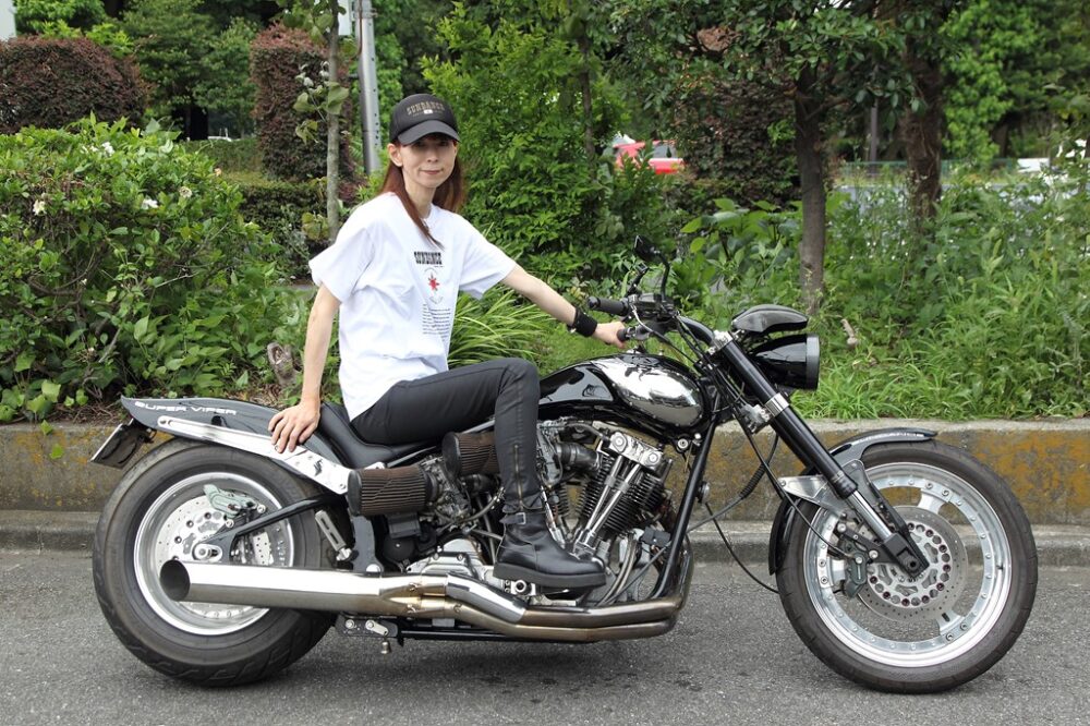 華奢な身体でマッチョなスーパーバイパーにまたがる藤田さんは、このマシンのほスーパーパンヘッドも所有とのこと。以前、街中で見かけたサンダンスのマシンにほれ込み、それに乗るために免許を取得したそうだが、最初の愛車であるカワサキ・ゼファー400から数えるとバイク歴は15年ほどでキャリア十分。このたび、かねてから憧れだったこのマシンがfor saleとなったことで、思い切って購入に至ったという。ストレッチフレームを使用したドラッグレーサー的な迫力の姿がお気に入りという。