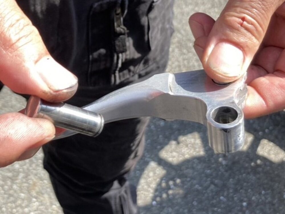 長年の使用によってピンとレバーがやせ細り、ピンを軸にレバー本体が上下にガタつくようになっていた。これも交換することで、ガタのないフィーリングに。