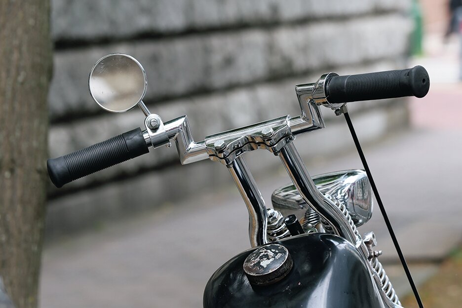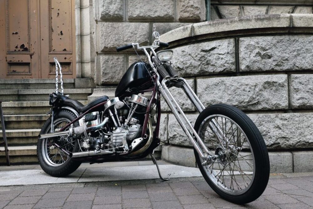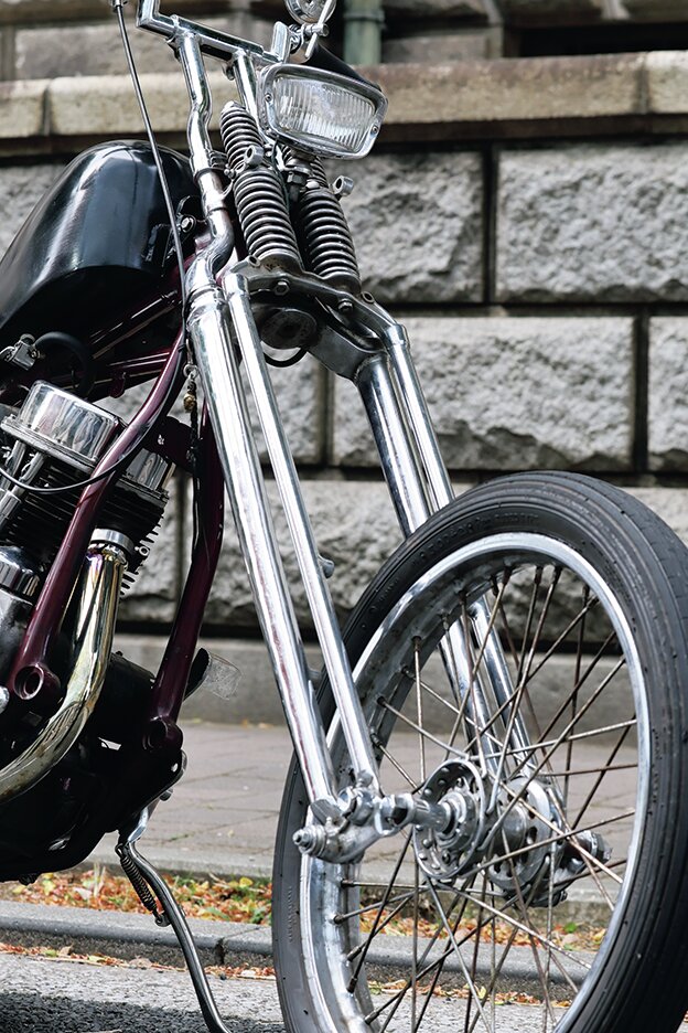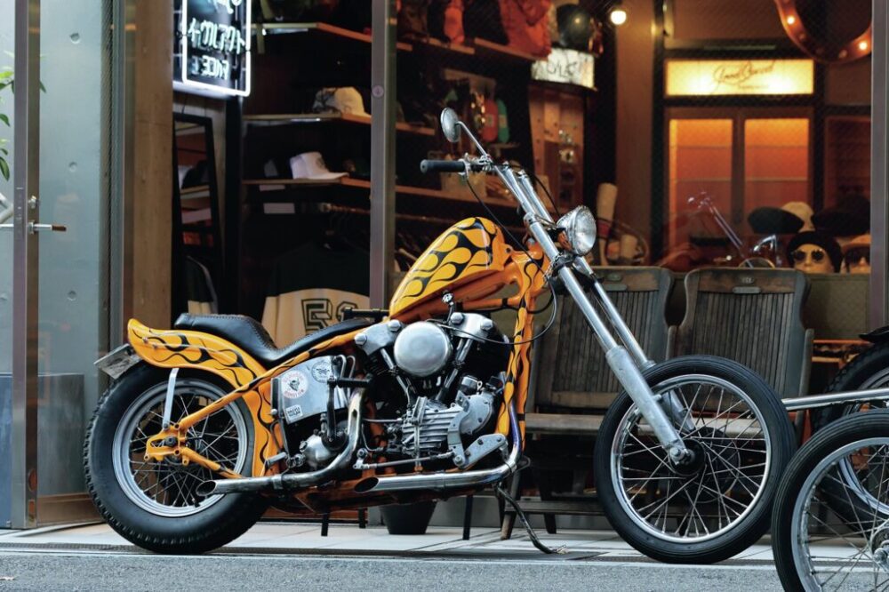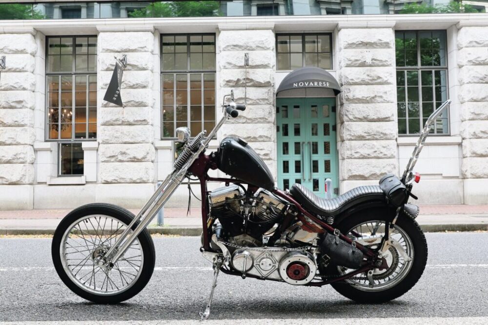 ロングライドを想定した純正タンクからスタイルを一新、横浜の街並みに似合うオールドスクールなパンヘッドチョッパーに。レアパーツや派手なギミックに頼ることなく、都会の走行のためにナローなフォルムに仕上げられている。フィニッシュを意識することなく気分で外装を変更することができる、ストリートのチョッパーの姿だ。