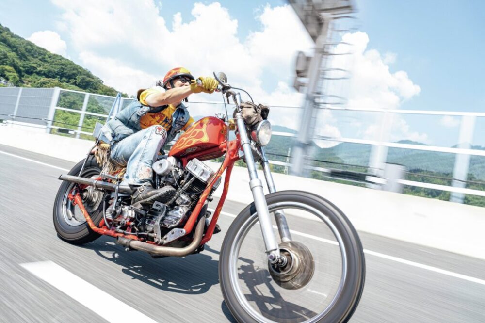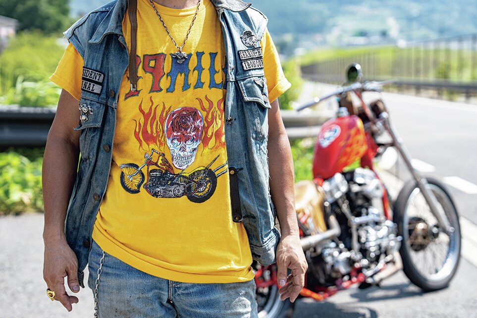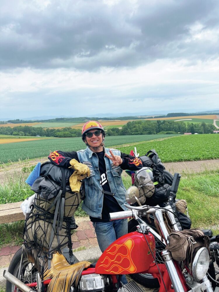 「好きなバイクで走りたいだけですが、チョッパーは軽くて曲がれるし荷物も詰めるから結果的にこのスタイルが自分の走り方に合っているんです。旅の楽しみは、気持ちがイイ道を走ることですが、その中でも北海道の長旅は別格。大自然の中を好きなバイクで仲間と一日中走って、目的地に着いたら食べて飲む、そして朝を迎えたらまた走る。ほかでは味わえない非日常がずっと続く感覚なんです」