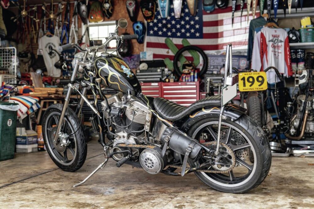 自身のバイクライフの経験から、クラシカルかつタフなアパレルやギアを生み出す「WEST RIDE(ウエストライド)」の代表中井浩之さん。本誌ではおなじみのベテランハーレー乗りであり、さまざまなスタイルのH‐Dを所有するが、そこには常にパンヘッドのチョッパーがある。
