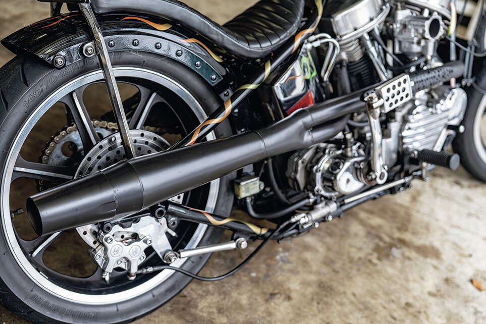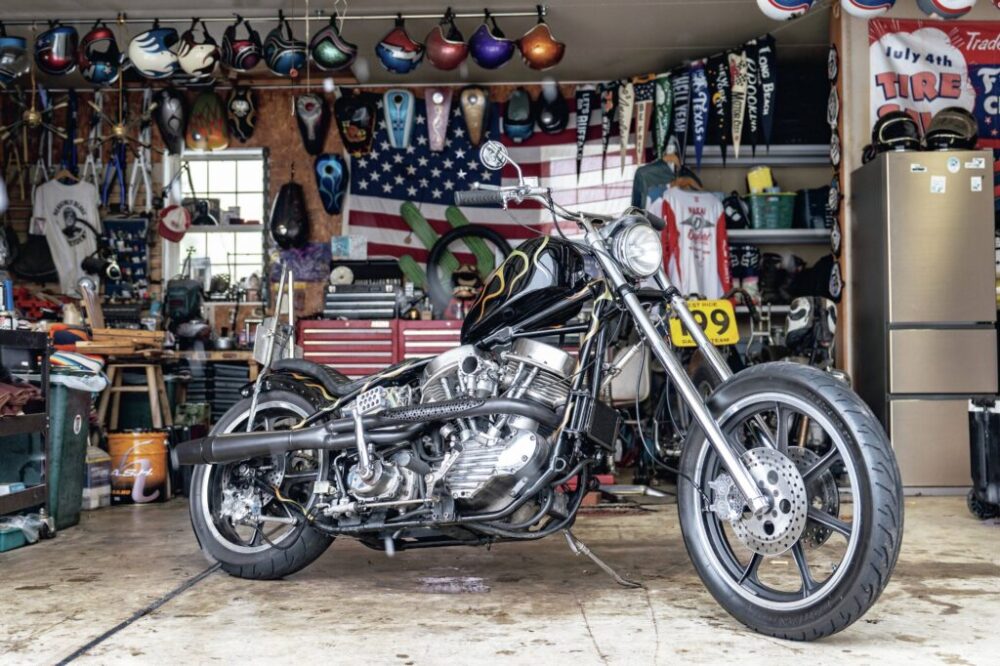 「チョッパーの美点は、何より軽さと整備性の高さ。余分なパーツがないから軽くて扱いやすいし、旧いバイクのトラブルはあっても、外装も配線もシンプルだから自分で整備しやすいのもメリットです。シッシーバーがあれば旅の荷物も積載できるし、走って自由を感じられるのはもちろん、チョッパーはいじり方の正解がいくらでもあって、ルールがないようなもの。自分にとってはチョッパーが自由の象徴なんです」