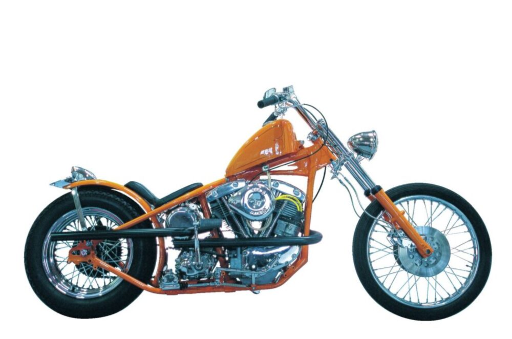 金のないバイカーがストックから余計なものを取り払い、軽くスリムに仕上げたチョッパーがフリスコスタイルの起源といわれているが、ここに紹介する一台はまさに正調のソレといえるもの。