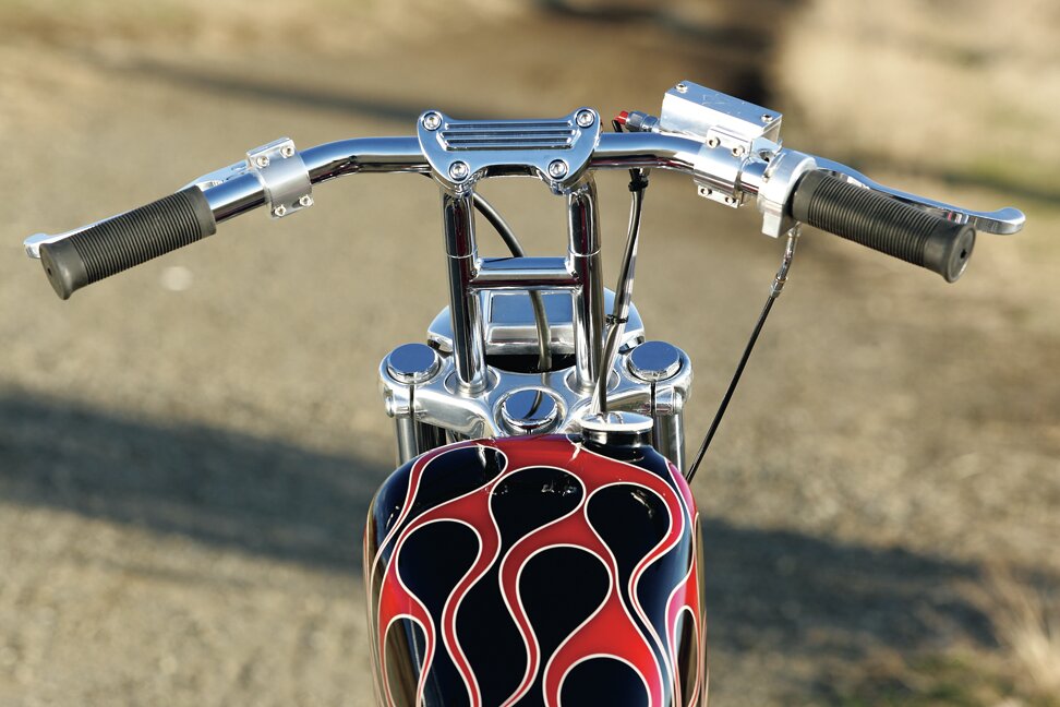 もともとアウトローバイカーが追っ手である警察から逃れるためにクルマの渋滞の中をスリ抜けしやすいようモデファイが施されたという逸話をもつフリスコスタイルだが、やはりそれを製作する上でハンドルバー選びは重要なポイント。