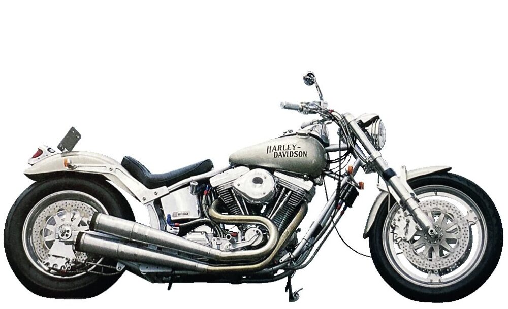 日本はもちろん、90年代はこのマシンのような低く流れるようなラインのカスタムが人気を博した世界のハーレーシーン。ネスのリッパースタイルや、そこに装着されていたバティスティーニ製タンクなどがハイエンドの定番だ。このマシンは当時の「ケンズファクトリー」が製作した一台。