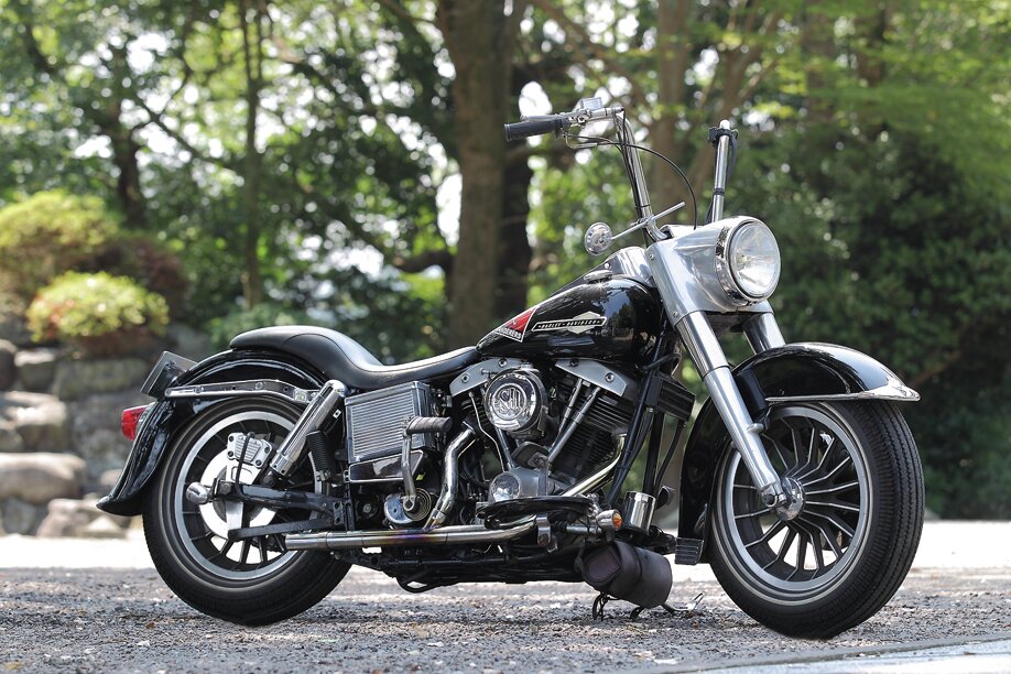 90年代にエボユーザーがこぞって乗り換え、異常人気となったショベルだが、その定番のカスタムがFLHのカウルを外したストリップドレッサー。ハンドルとシートの交換程度でカスタム感が演出できるのも魅力だ。