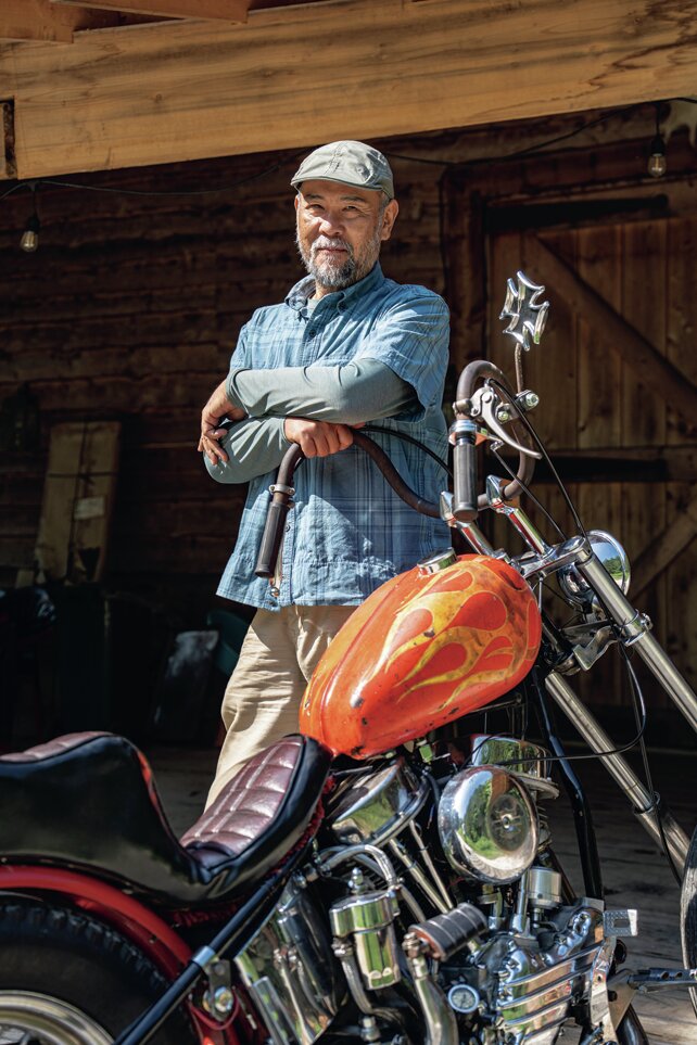 ヘルメットメーカーTT&CO.の代表であり、エイジングを得意とするペインター。さまざまなハーレを乗り継いだが、近年はクレイジーな70sスタイルに心酔中。