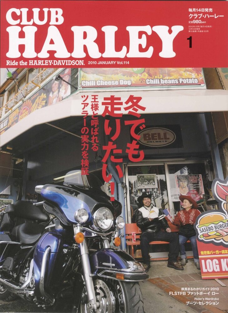 2010年1月号(Vol.103)はツーリング特集。ただ走るのでは企画が成立しないので、ハーレーにちなんでアメリカンなことをしようと、ハンバーガーで有名な佐世保を目指して走ろうという飲みながら考えたような企画を立て、なんなら3食全部ハンバーガーでもいいや、なんて勢いで出発。故・持木カメラマンのマーチに並走してもらいながら5日ぐらいかけて東京~佐世保を往復した。佐世保のログキットの店前で撮った写真が表紙を飾ったのもいい思い出。