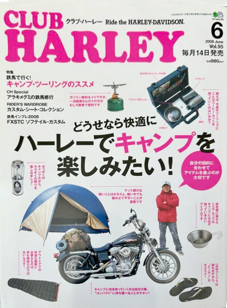クラブハーレー編集部に配属されて初めて編集に携わった2008年6月号(Vol.95)。はっきりとは覚えていないけど、確かテントの写真をひたすら集めた記憶がある。途中ライトニング編集部に在籍していた期間もあるけれど、もう200号ぐらい作っていることになるのか~。