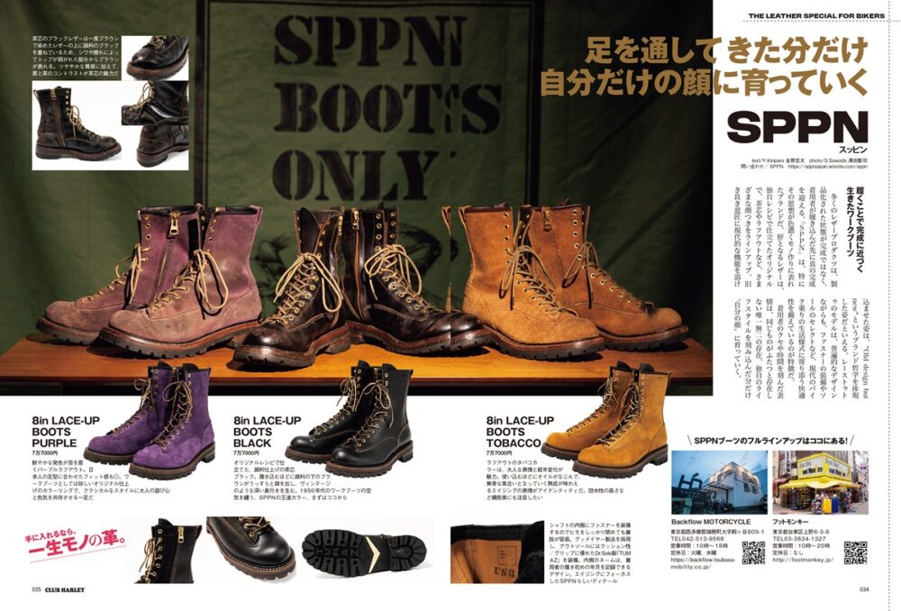 販売されている新品状態が完成形ではなく、着用した人が使い込んでこそ“真の完成”を迎えるレザープロダクツ。その思想が特に色濃くモノ作りに表れているブランドが「SPPN(スッピン)」です。同社のブーツは、独自のレシピで仕立てられたレザーを用いて作られており、はき込むほどに自分だけの一足に育っていきます。そんな魅力を紹介しています。