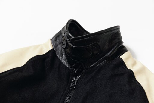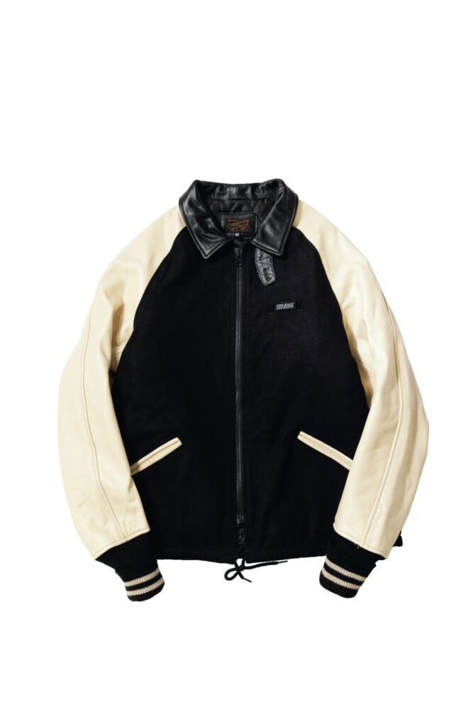 アメカジ定番のファラオジャケットをメルトン×レザースリーブで再構築した一着。身幅広めのゆったりとしたシルエットでしっかりとトレンドを抑えているのもうれしいポイント。風合いのあるアイボリーレザーを使っているのでこなれた雰囲気に。中綿にはシンサレートを配しており、保温性も抜群。3万5200円