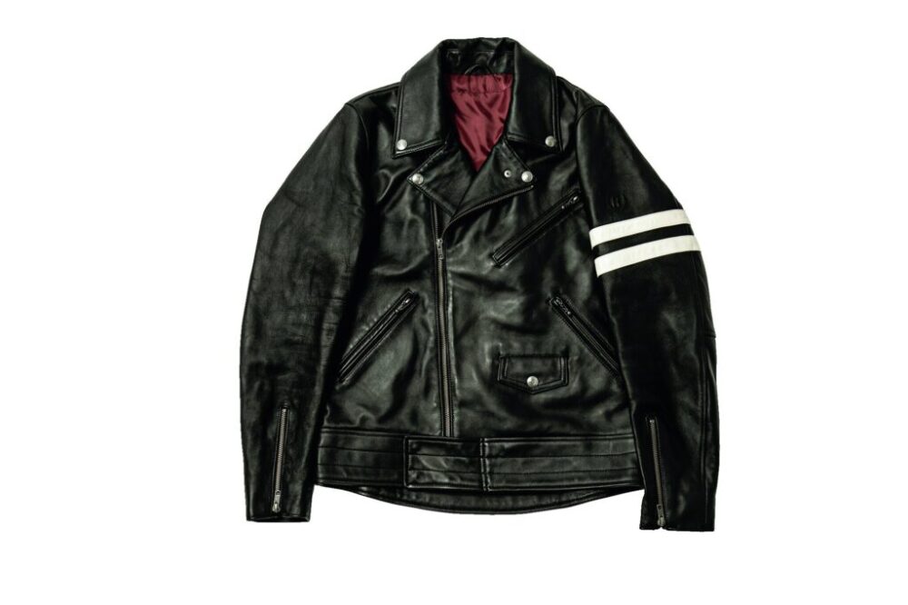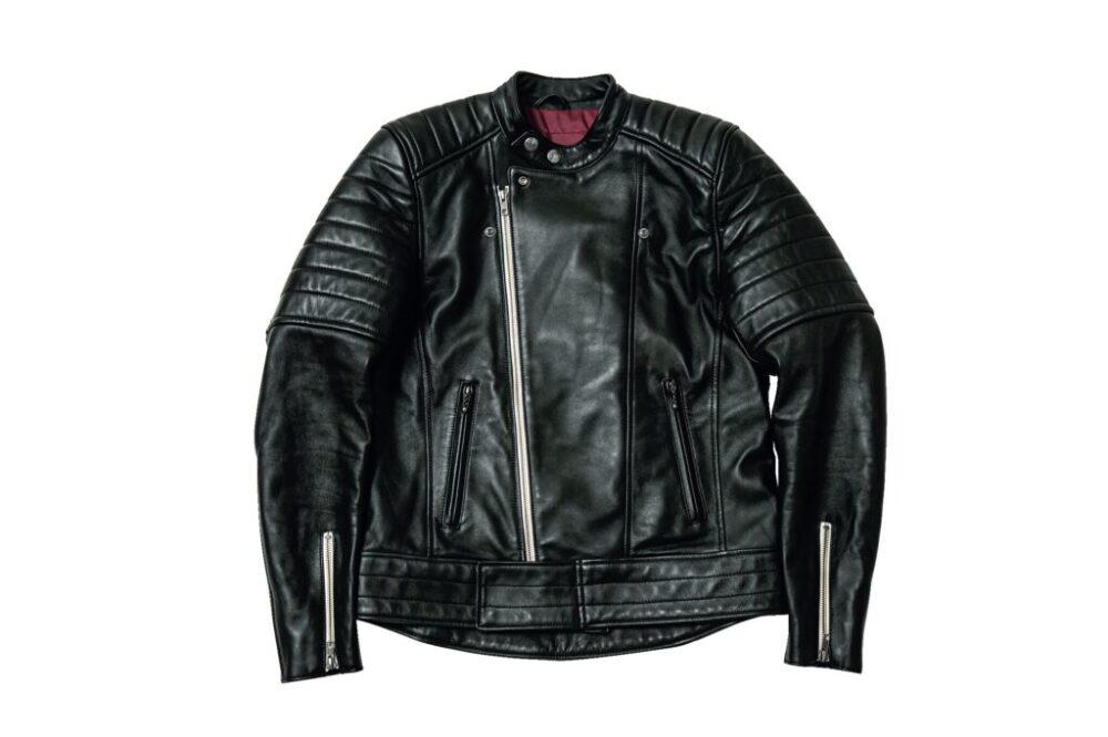 左ウデのホワイトラインが印象的な一着は、1950~70年代の名作ダブルライダースをベースに、現代のシーンに合わせたディテールやマテリアルを融合し、クラシックな見た目とは裏腹に現代の最新仕立てとしたことで、まったく新しいライダースに生まれ変わっている。肩、ヒジ、胸、背中にプロテクターを標準装備しつつも、スタイリッシュなシルエットが特徴だ。4万4000円