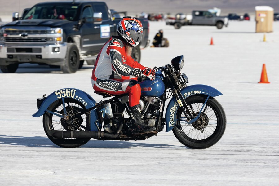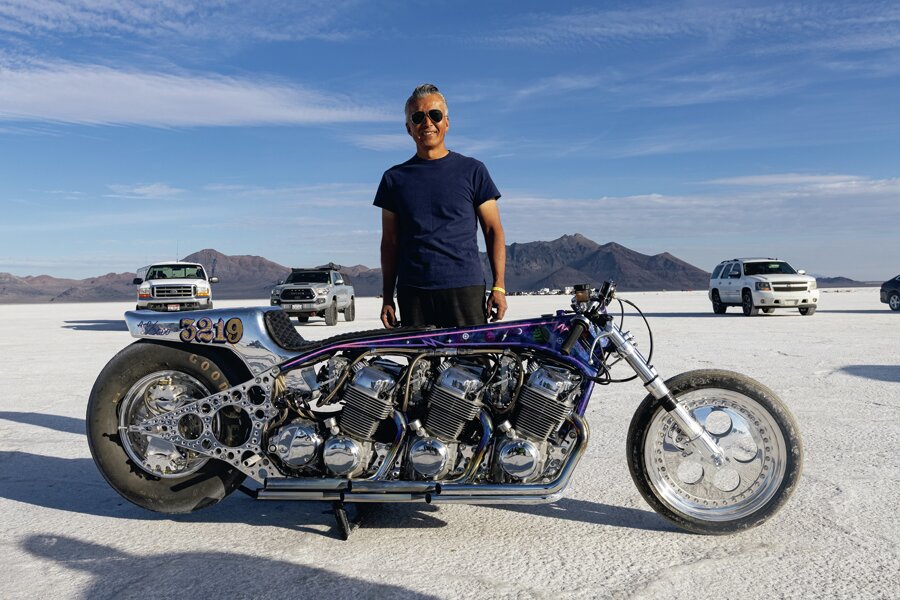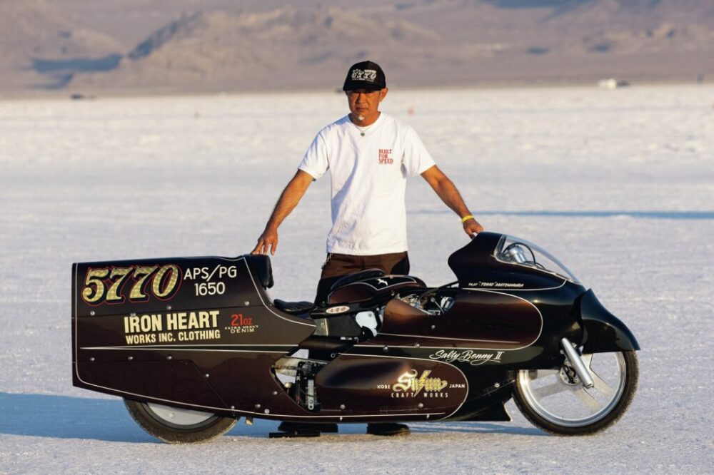 松村さんは、2017年にS&S製パンヘッドを搭載したランドスピードレーサー「ソルティボニーⅡ」を製作し、「ボンネビル・モーターサイクル・スピードトライアルズ」に挑んだ。