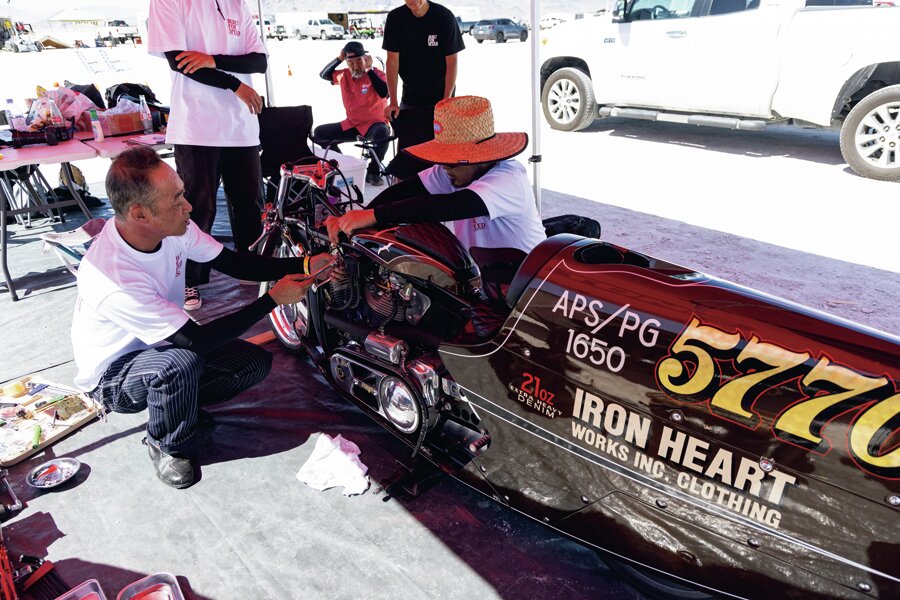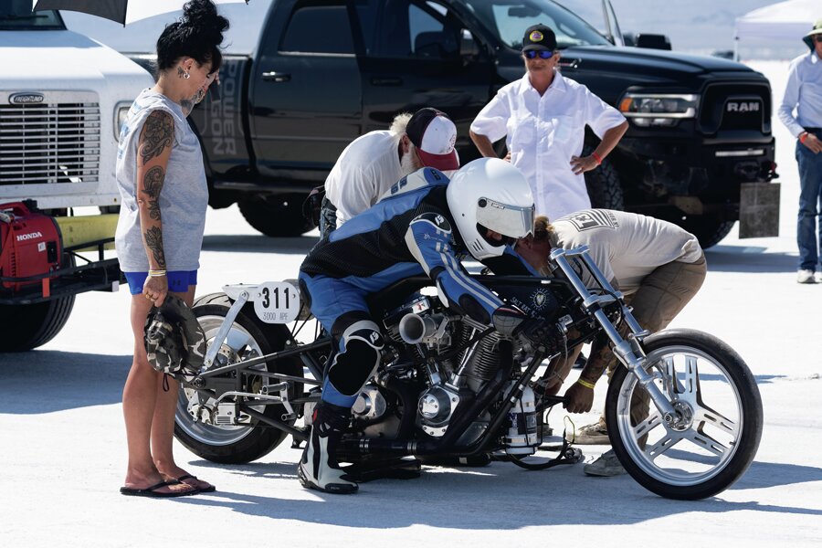 また、地面の状態が悪い中で最高速に挑まなければならないときもある。一般道で出せるような速度のバイクやクラスであればテクニックが必要になることはないが、200マイルを超えるハイスピードでは、一瞬の判断で勝負の行方が決まる。じつはとても奥が深いレースなのだ。