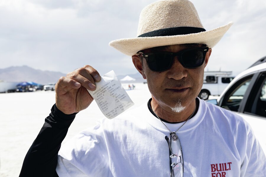 今年のスピードウイークは、塩の路面のコンディションが稀に見るほどよく最高速記録を出すには絶好のチャンス。スピードウイークを走るのは初めてなので、松村さんのターゲットである時速200マイルを出すにはルーキーコースから徐々にスピードを上げてランクアップしていく必要があった。
