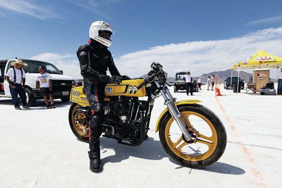 「ムーンアイズ」のスタッフ“Sunny”矢野さんは、5年続けてランドスピードレーサーにしたムーンカラーの「スポーツスター」でエントリー。レコードには届かなかったが終始笑顔で競技に挑んだ。