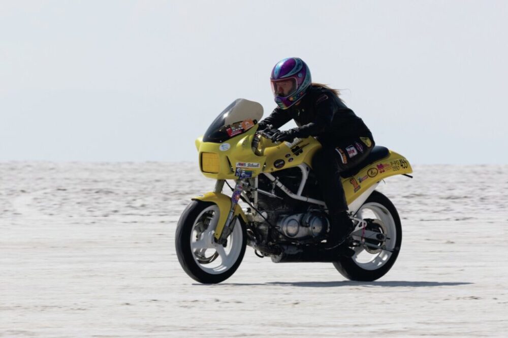 モーターサイクルスピードトライアルズは、その名の通りバイクだけの競技。今年はストリームライナーのエントリーが3チームあったがロングコースのクローズで期待通りには走れなかった。女性ライダーの参加も多い。
