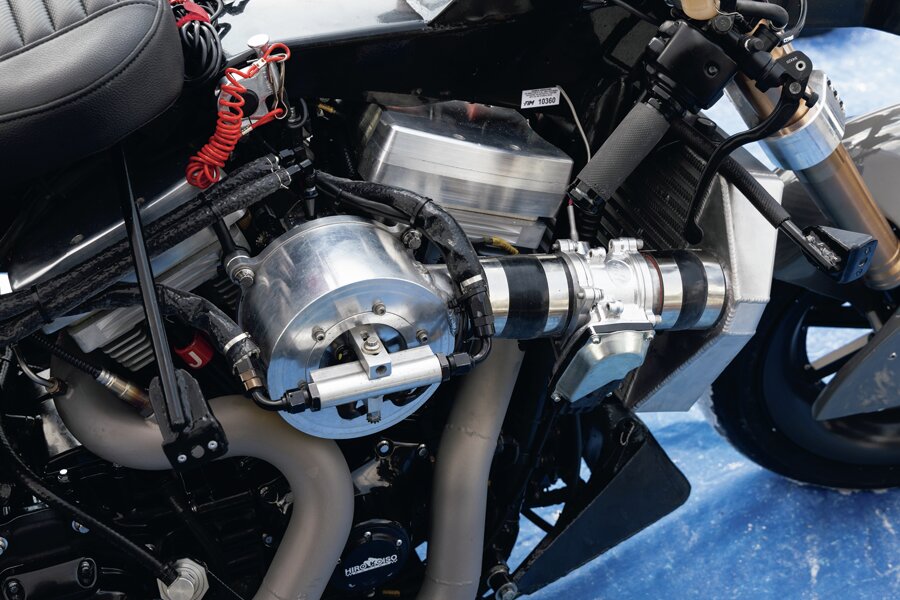2017年のカウルなしでの記録は、227.236マイル。翌年にカウルを装着した仕様では259.951マイル。エンジンの仕様が違うので単純に比較できないが、空力性能が重要なことは容易に想像できる。2021年に249.443マイル、400キロを超える記録を樹立。車載GPSでは265マイルをマークした。これは、ハーレーワークスのストリームライナーの最高速記録と並ぶもので、H-Dのエンジンを搭載したマシンとして世界最速の称号を得るのも現実的になってきているのだ。