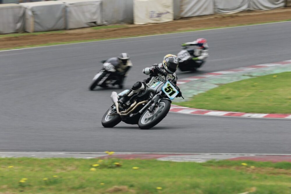 AVCCは「American Vintage Competition Clubman Roadrace」の略で、ヴィンテージのハーレーダビッドソンやインディアンなどのアメリカ製バイクを対象としたレース主催団体。今年のシリーズ最終戦は11月9日の第3戦で、筑波サーキットにて開催された。https://www.avcc1996.com