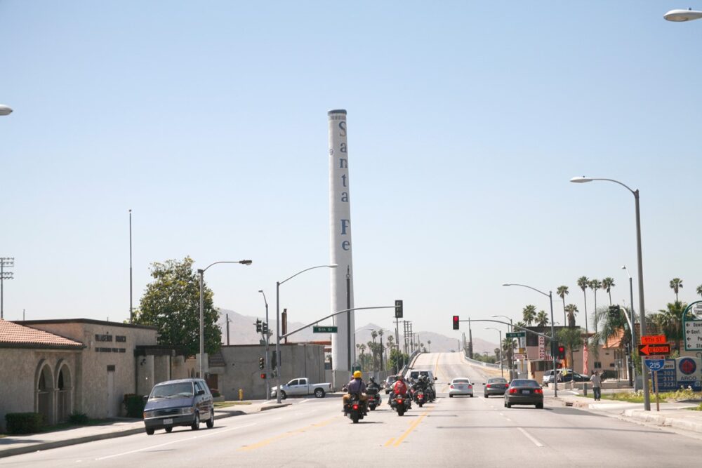 カリフォルニア州のサンバーナーディーノを走行していると、目の前に「サンタフェ」の文字が。これは小学生のころ話題になった、篠山紀信が撮影した宮沢りえの写真集の舞台なのかと思ったら、かつて通っていたサンタフェ鉄道の駅なのだそう。かのサンタフェはニューメキシコ州にあり、ここからはかなり遠い。