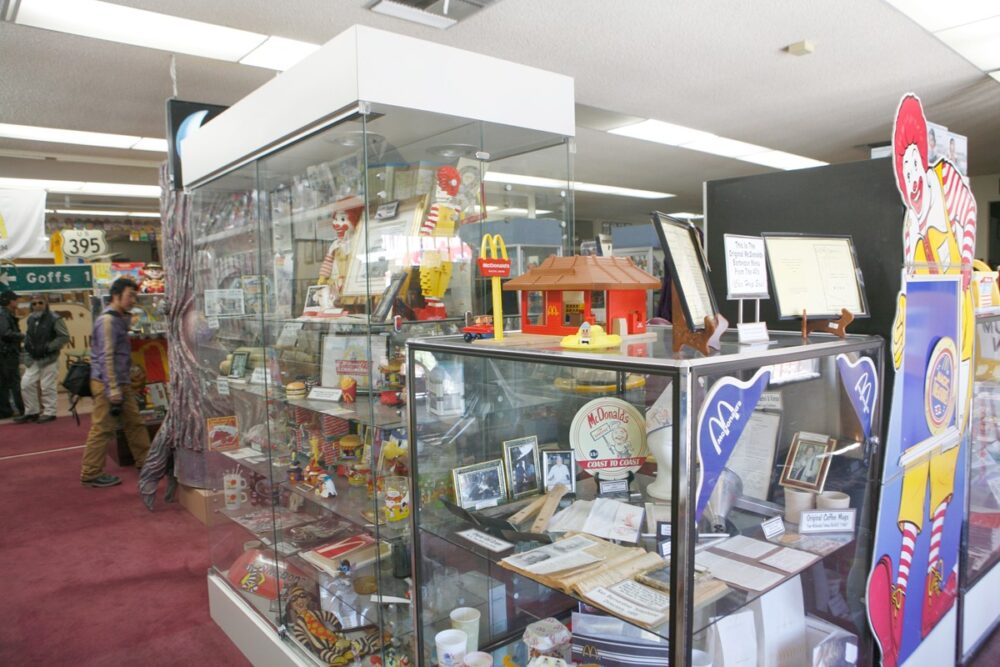 マクドナルド1号店は、現在は(撮影当時も)ハンバーガーショップとしての営業はしておらず、博物館となっている。中にはマクドナルドにちなんだおもちゃや食器などが展示されていた。外のマックの看板の前にはルート66のロードサインが。ここはルート66の旧道のすぐ近くにあるようだった。