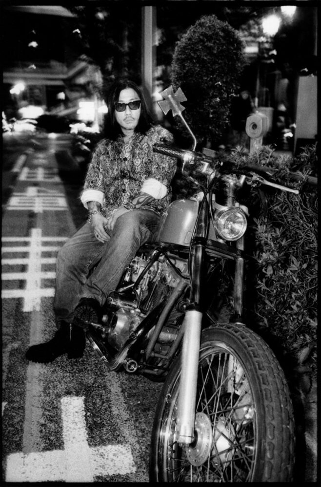 恵比寿方面へ走る。明治通り沿いで停車。「ここ後輩の店なんですよ」とBARを指差し、リキッドルーム近くの道路沿いで撮影開始! ファインダーを覗くとサングラス越しの物凄い目力に圧倒されるが負けないように強くシャッターを切る! 5分で撮影終了し、後輩さんのBARでアイスコーヒーをご馳走になる。シホウさんはというとすぐにカウンター奥にいた初対面の男性と何やら話し込む。そして5分後には途中で入ってきた知り合いの若者と肩を組んで話し込んでいる。何とも熱いハートを持った男なのだ。