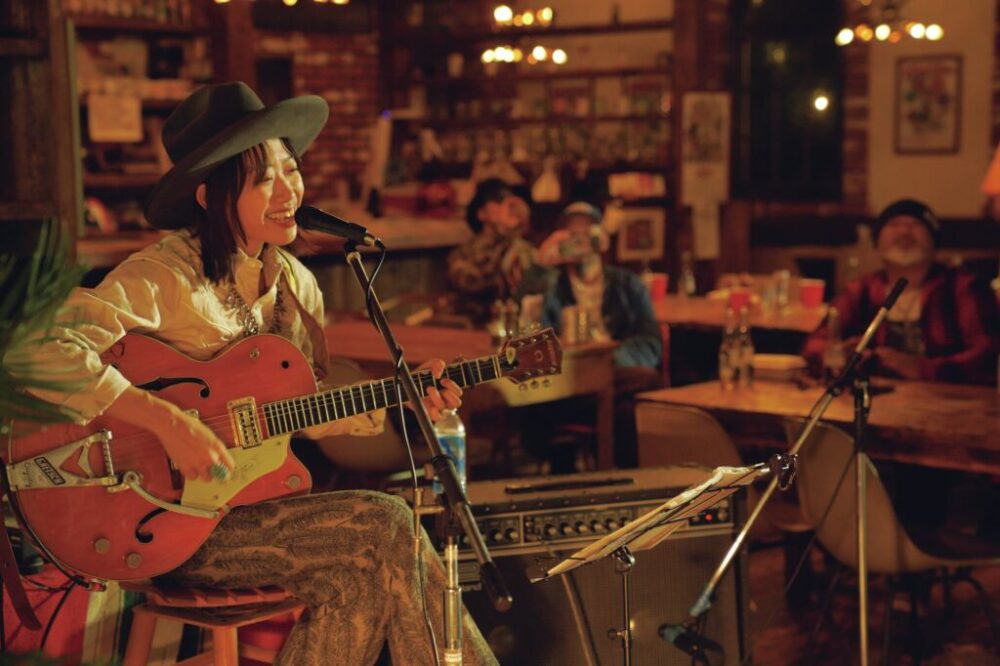 アメリカンルーツミュージックを愛するミュージシャン・堀口チエによるライブが今年も実現。心地よい音が夜の会場を優しく包み込んだ。