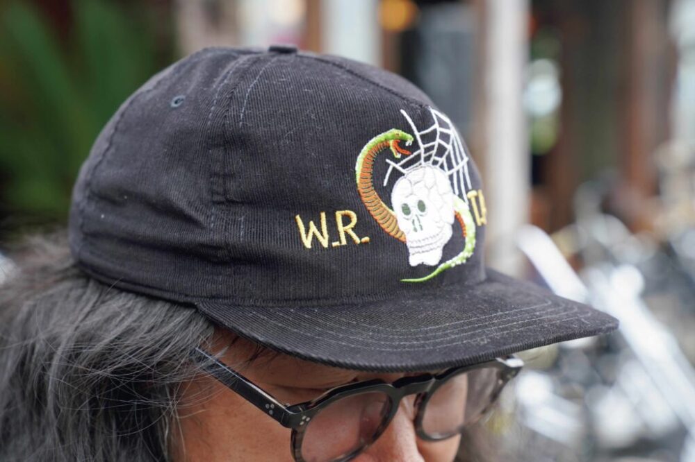 「ウエストライド」代表中井さんからの勧めでB級チョッパースタイルのパンヘッドをゲットしたウエスタンリバースタッフの高橋さん。じつは今年の9月に納車されたばかりの新しい相棒だとか。「サイクルサイコ」に塗装をお願いしたタンクはエイジング加工が施されて雰囲気抜群。またウエストライドのバイカーベストに、ホワイトデニムを合わせた技アリの着こなしを披露。等身大のバイカーファッションの好例だ。