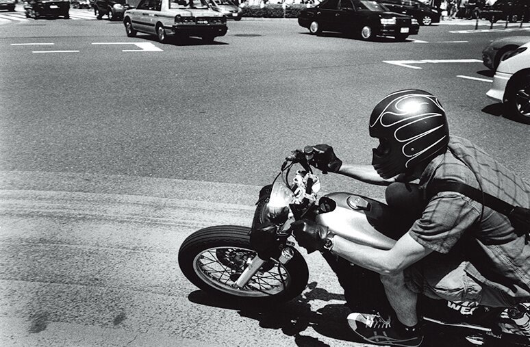 「都内は最近整然としてしまってあまり惹かれないけれど、西成や寿町はすごい人と出会えるので、よく足を運んで撮影しています。ただこのあたりは純粋に人を撮ることが多いかな。そもそもクルマやバイクに乗っている人が少ないんです。だからそんな写真を撮るときは湘南エリアを愛車で走って、カッコいいクルマやバイクを見つけたら、信号待ちのときに『写真撮らせてください』って声をかけて撮らせてもらいます。だから結構Uターンして追いかけたりしてますよ(笑)」