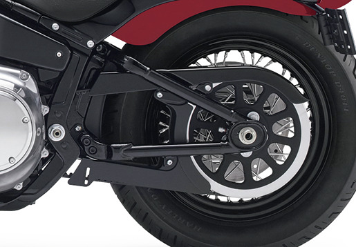 新型ソフテイルの開発にあたって、世界中のユーザーから「ハーレーに求めるもの」をリサーチしたところ、アグレッシブな走りや軽くて扱いやすい車体など、従来のハーレーにはなかった要素を求める声がかなり多かったことがわかった。そんな要望を満たすために現代のソフテイルは開発されたという。そのため、あえてリジッドフレーム由来のシルエットに固執しなかったというワケだ。いかんせん旧型のソフテイルでワインディングを走ればあっという間にマフラーなどをガリッと擦ってしまったが、現行型ではバンク角を深くするためのあらゆる取り組みが行われたのである。