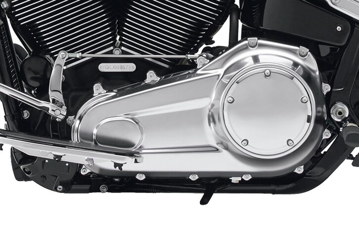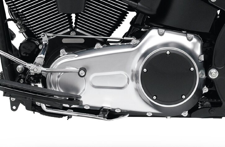 エンジンにラバーを介してフレームに搭載する「ラバーマウントフレーム」とは異なり、何も介さずに搭載されているソフテイル。そのためエンジンからの振動がライダーにダイレクトに伝わってしまう。よってエボリューションはなかなかハードな乗り心地だったが、TCからは振動を打ち消すためのバランサーを備えた専用エンジンへと進化。M8はツーリングモデルのエンジンにもバランサーが採用されたが、ソフテイルは前後に2つ装備したデュアルバランサー仕様という違いがある。TCとM8、どちらもデュアルバランサーという点は共通しているのだが、チェーン駆動だったものがギア駆動へと進化。これは騒音を軽減するという狙いからで、M8はあらゆる部分で騒音が抑えられているのである。