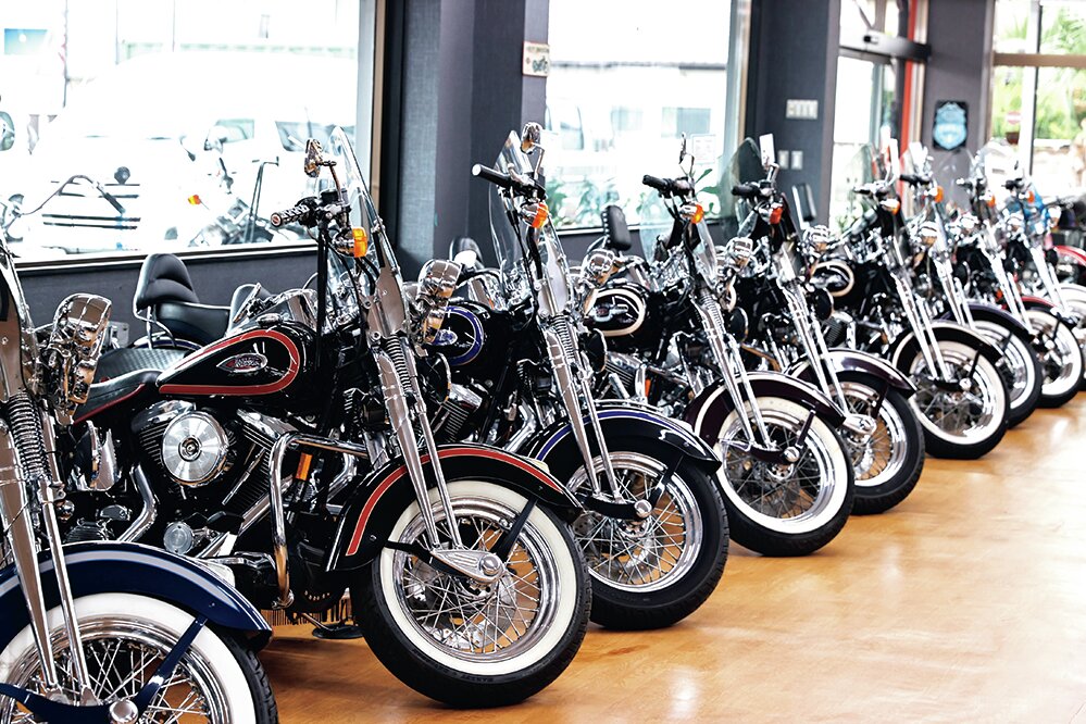 山梨県にある日本最大級のヴィンテージハーレー専門店。アメリカより直輸入したハーレーを中心に、ヨーロッパ車、国産車まで幅広くラインアップ。オリジナルからフルカスタム車まで在庫は200台以上。ショップでは常時150台以上を展示している。販売はもちろん、点検・修理、整備、買い取りまで幅広く対応。掲載価格は取材当時のもの。