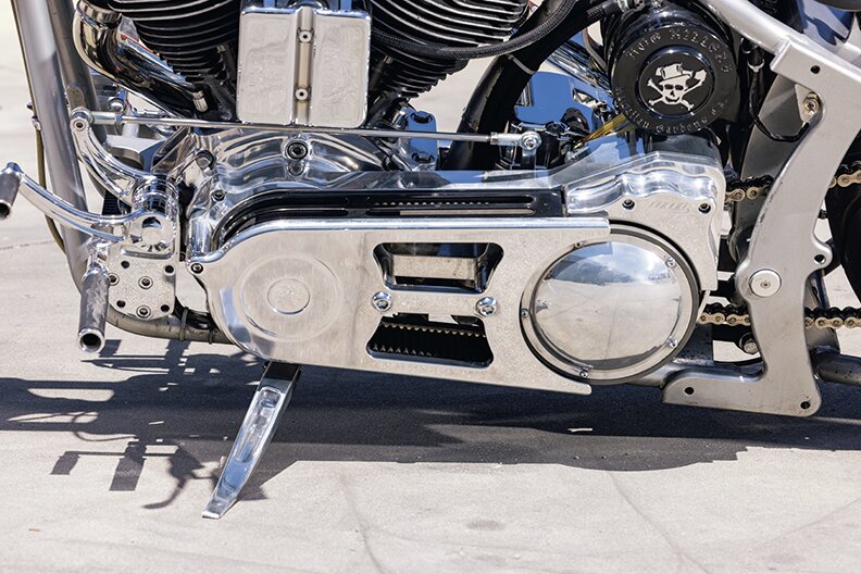 2次ドライブはBDL製1.5inオープンプライマリー。セル付きのため始動もイージー。フットコントロール系はPM製。クロムがまぶしいセクションだ。