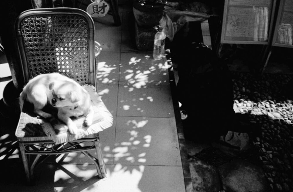 2004年の旅で沈没を経験した中国雲南省の麗江。長期間宿泊した宿は、1泊朝夕飯付きで当時のレートで300円ほど。写真は宿のマスコット的な犬。名前はなんだったか。